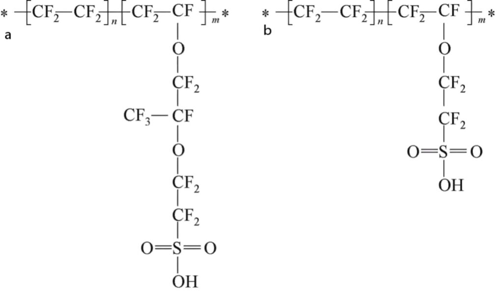 圖2. (a)長側(cè)鏈Nafion系列離聚物(b)端側(cè)鏈Aquavion? 離聚物