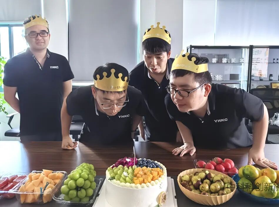 在全場(chǎng)注視與期待中,壽星們閉眼合十,默默許下心愿——或許是個(gè)人成長(zhǎng)進(jìn)階,或許是團(tuán)隊(duì)協(xié)作順?biāo)欤只蚴巧钚〈_幸。我們始終相信,這份期許會(huì)如深耕的氫能事業(yè)般,在時(shí)光澆灌下沖破阻礙、點(diǎn)亮未來(lái),綻放璀璨光芒。