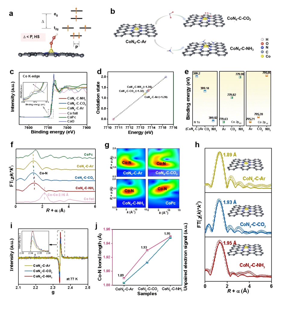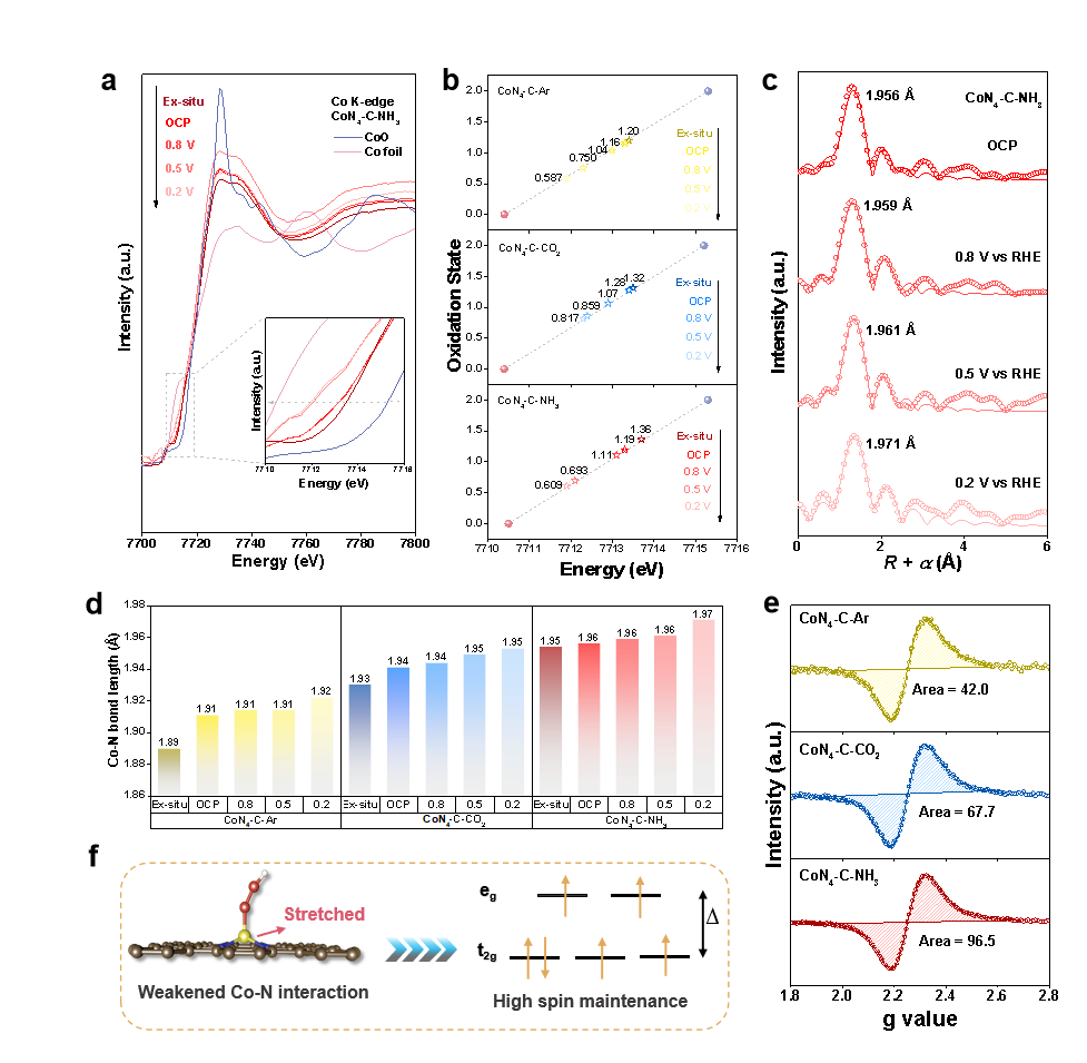 ? ? ? ? ? ? ? ? ? ? ? ? ? ? ? ? ? ? ? ? ? ? ? ? ? ? ? ? ? ? ? ? ? ? ? ? ? ? ? ? ? ? ? ? ? ? ? ? ? ? ? ? ? ? ? ? ? ? ? ? ?圖3. CoN4-C-Ar/CO2/NH3催化劑的原位自旋態(tài)結(jié)構(gòu)表征