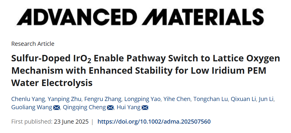 Recently, the team led by Researcher Yang Hui from the Shanghai Advanced Research Institute of the Chinese Academy of Sciences and Ningbo Zhongke Kechuang have made important progress in the research and development of iridium-based catalysts for the anode of proton exchange membrane water electrolyzers (PEMWE). Traditional IrO? catalysts follow the adsorption evolution mechanism (AEM), which is restricted by the linear relationship and it is difficult to break through the intrinsic activity. Lattice oxygen mechanism (LOM) By directly utilizing lattice oxygen to participate in the reaction, the energy barrier limitation can be broken, but it will cause the loss of lattice oxygen and weaken the Ir-O bond. The team proposed a sulfur-mediated IrO2 catalyst (IrO2/S) to switch the OER pathway from the traditional AEM to LO